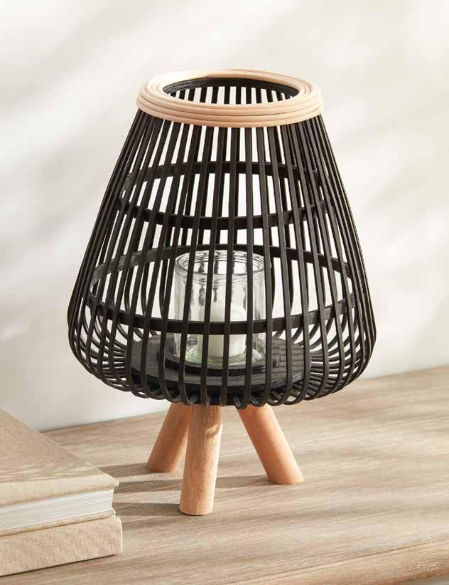 Laterne Bambus, mit Glaskerzenhalter und Standfüßen, ø 24 cm, Höhe: 33 cm
