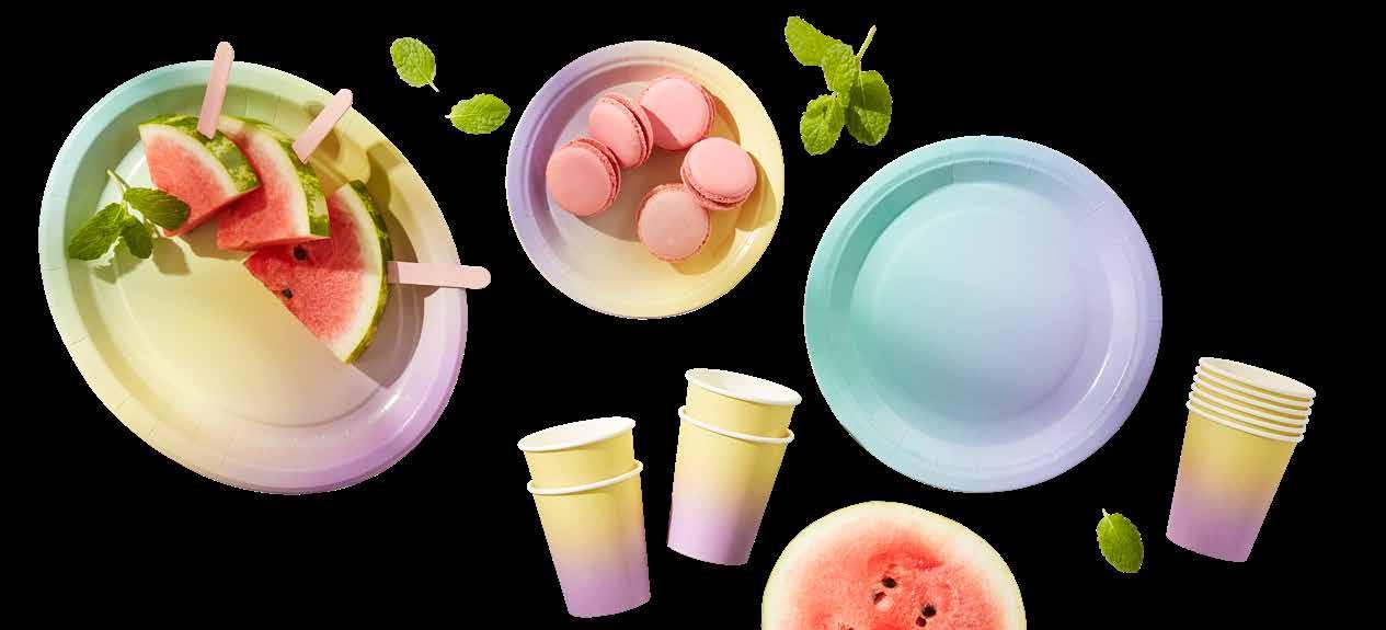 Pappgeschirr, 5-teilig mit Aufdruck, Maße: 30,5 x 25,5 cm (* 0,26 € pro Stück)