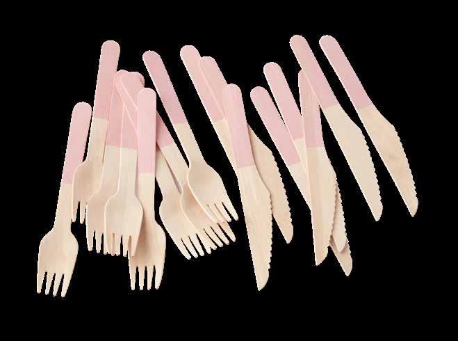 Holzbesteck, 16-teilig im Set enthalten: 8 Gabeln und 8 Messer, mit farbigen Griffen oder Griffen in Naturoptik (* 0,06 € pro Stück)