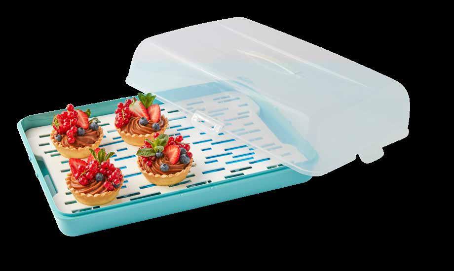 Kuchenbehälter mit transparentem Deckel mit Griff, Tablett und zwei Kühlpacks, Maße: 40 x 30 x 10 cm