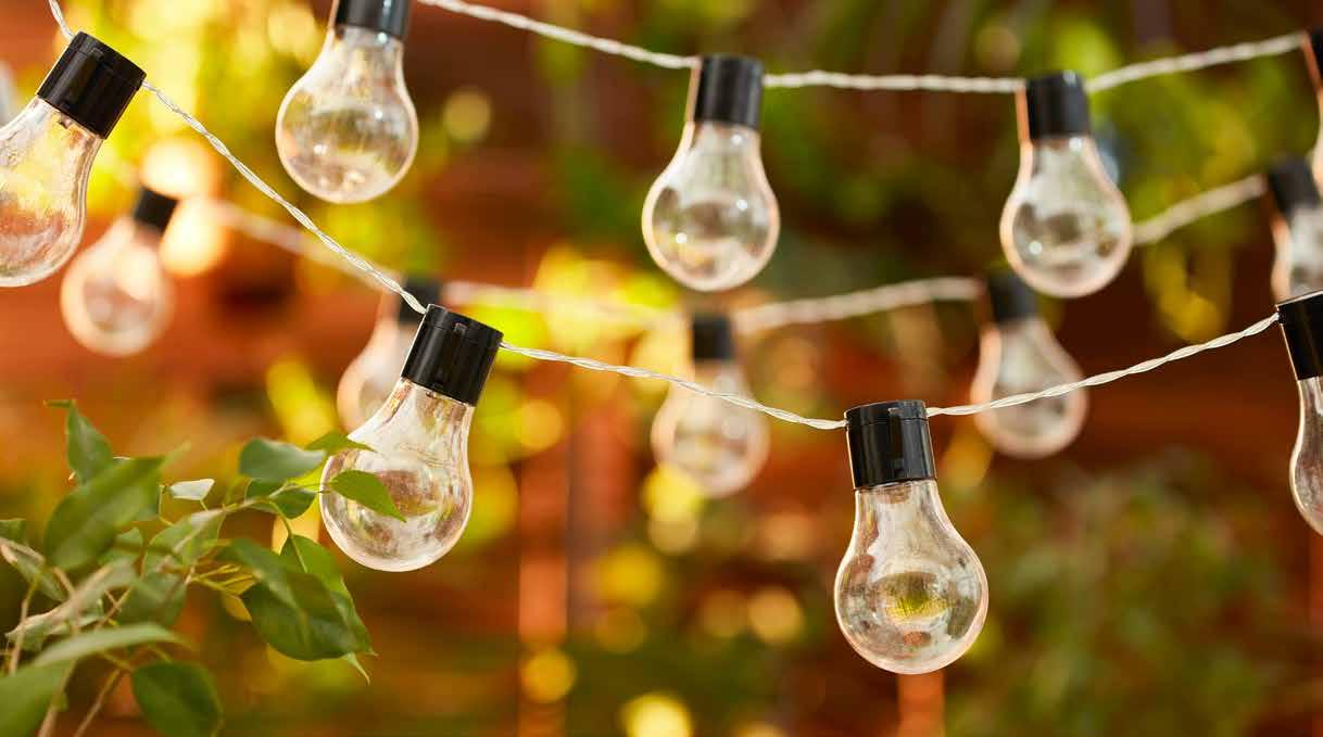 LED-Lichterkette mit 20 Leuchten zur Verwendung im Freien, solarbetrieben, mit Leuchten in Glühbirnenform, Solarpanel und Bodenspieß, Länge: 485 cm