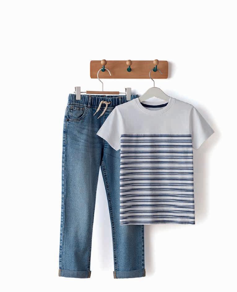 für Jungen, mit gestreiftem Aufdruck, Größen: 104-134 cm