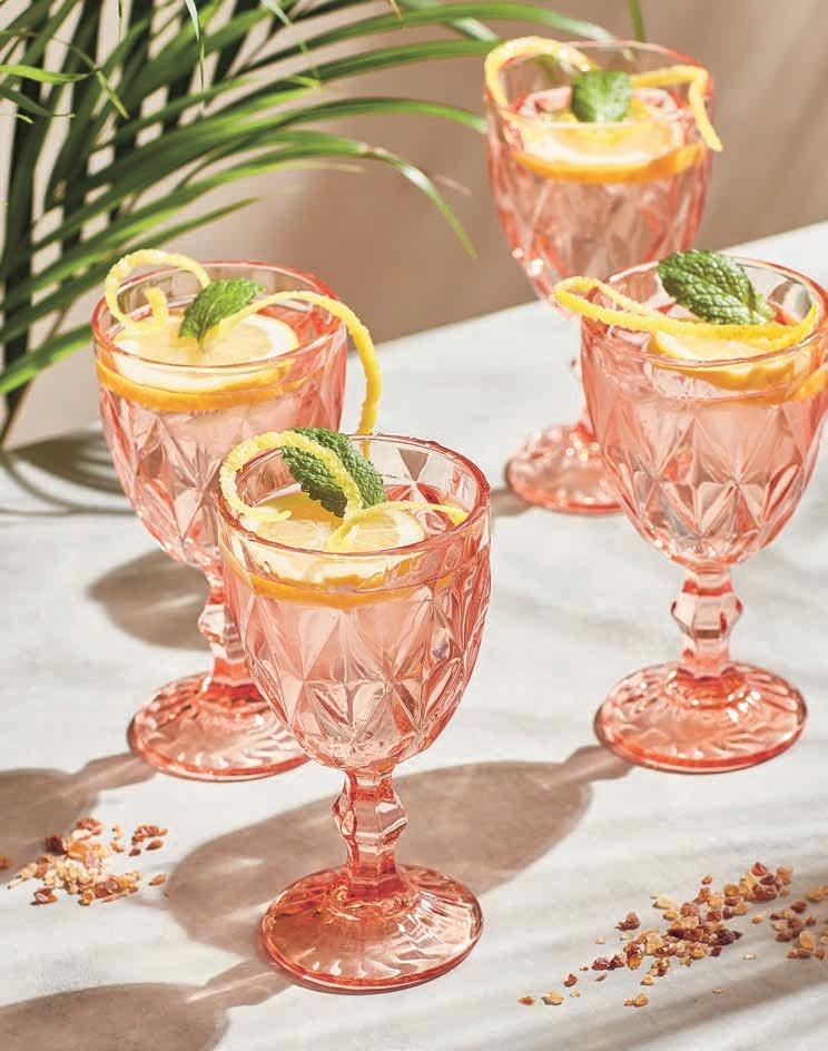 Trinkgläser 4er-Set mit geprägtem Muster, Sets in verschiedenen Farben erhältlich, Vol. 350 ml (* 1,25 € pro Stück)