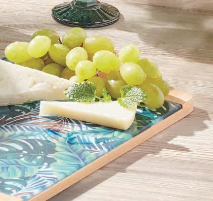 Servierbrett Bambus, Glasschicht mit Aufdruck, Maße: 35 x 21,5 x 1,5 cm