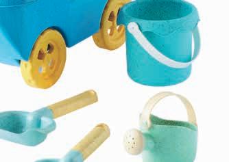 Kunststo mit natürlichen Materialien, bestehend aus: Zugwagen, Gießkanne, Harke, Schaufel und 2 Formen, für Kinder ab 2 Jahren