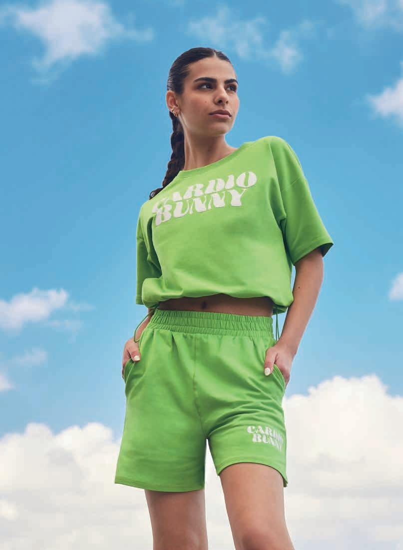 95% Baumwolle und 5% Elastan, mit Taschen und Aufdruck, Größen: XS-XL