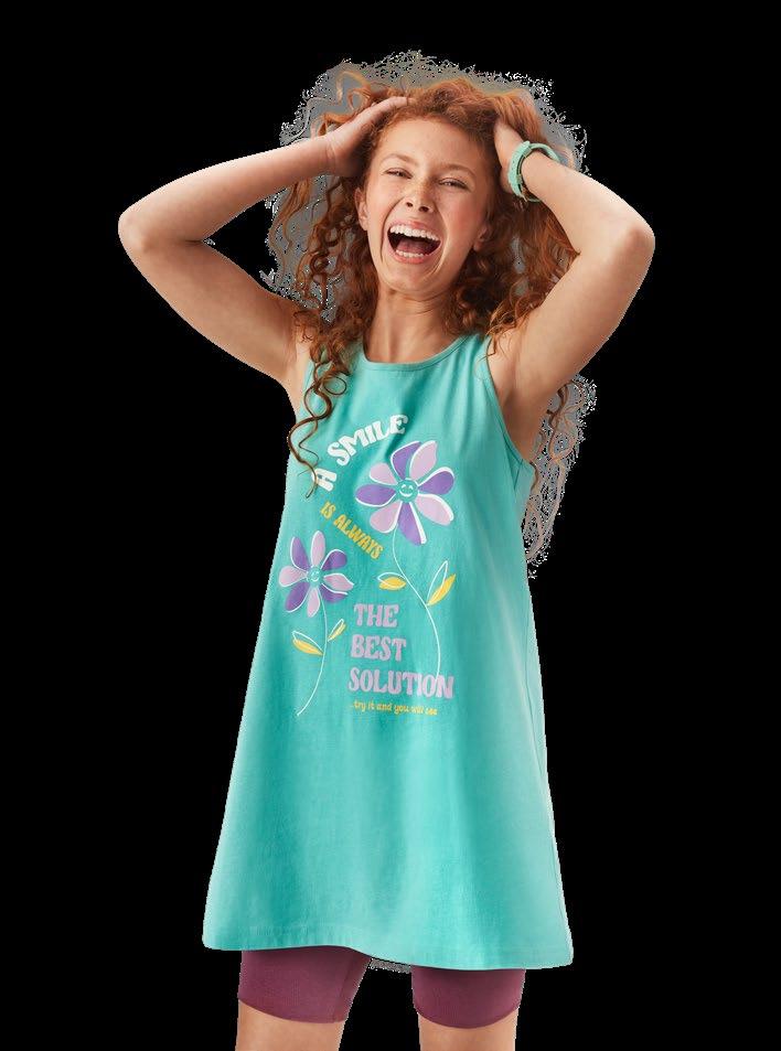за бебета, за момичета, с тънки презрамки, с волан на деколтето, разкроена, с принт, размери: 74-98 см