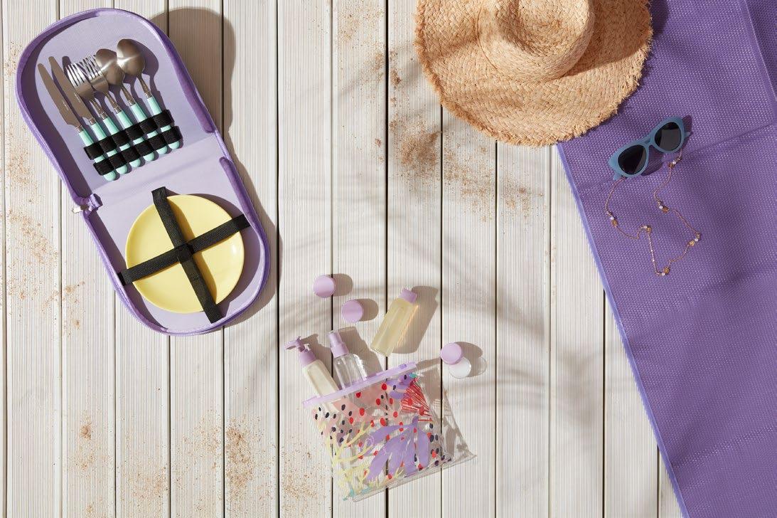 за 2-ма души, включва: 2 лъжици, 2 вилици, 2 ножа и 2 чинии в калъф с цип, с принт, размери: