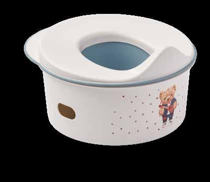 verwendbar als Töpfchen oder Übungssitz, im Set: Behälter-Hocker mit Griffen, rutschfeste Elemente und Aufdruck, und Toiletten-Übungssitz