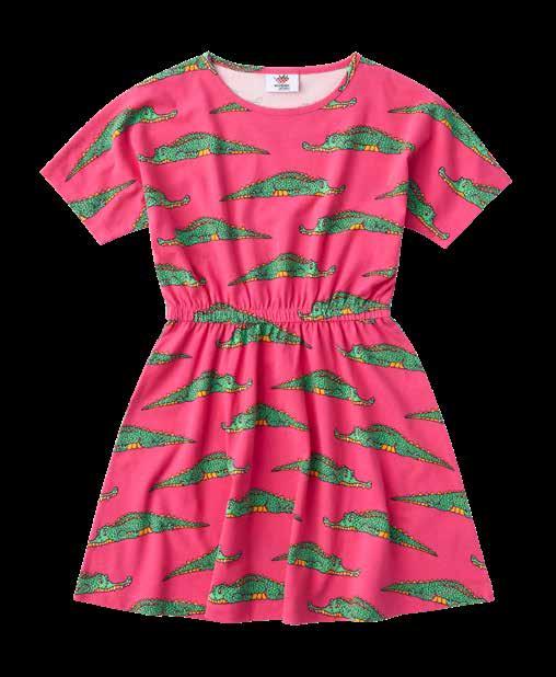 Kleid 100% BioBaumwolle für Mädchen, elastischer Bund, geraffter Rock, mit Aufdruck, Größen: 104–134 cm