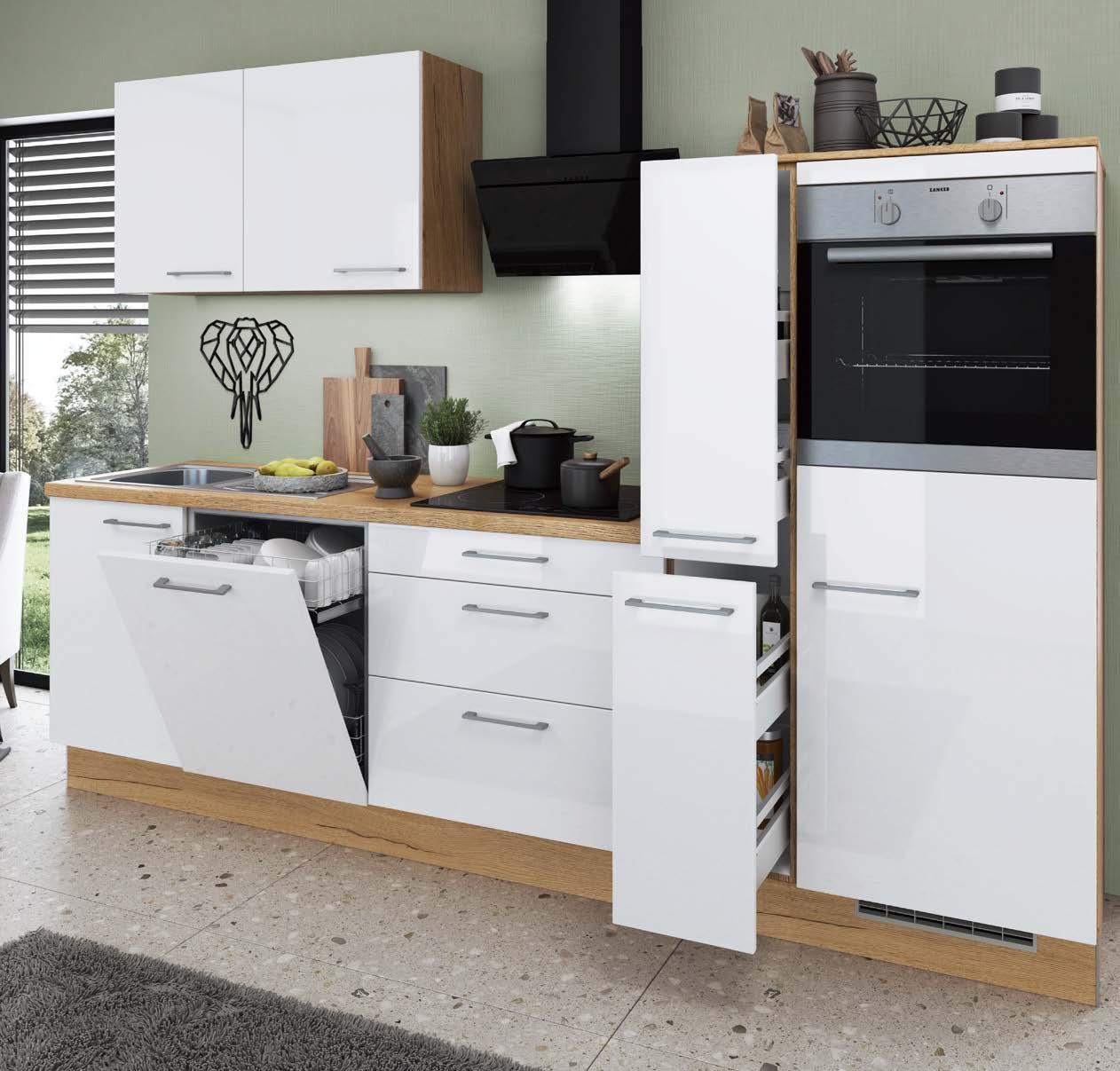 ca. 320 cm breit, Front: Weiß Hochglanz, Korpus: Sonoma EicheNachbildung, inkl. Spüle, passende E-Geräte gegen Mehrpreis 5099470/50