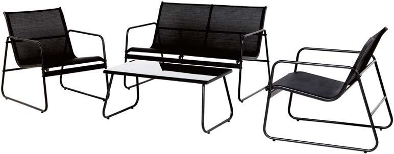 KW 14/23 S. 30 oder ab 12,50 E m tl. Rate F1 499.99 Set inkl. Glasplatte inkl. Sitzkissen Lounge-Sofa-Set Polyrattangefecht 1x 3-Sitz-Sofa: ca. 191 x 74 x 64 cm 1x Hocker: ca. 86 x 66 x 32 cm 1x Tisch ca. 86 x 66 x 32 cm 5943594/00 oder ab 10 E m tl. Rate F1 349.99 Set inkl. Glasplatte inkl. Sitz- und Rückenkissen Pavillon Stahl,Polyester ca. 300 x 400, H: 270 cm 5070443/01 oder ab 9 E m tl. Rate F1 199.99 inkl. Seitenteile ca. 3 m ca. 4 m Gartenstuhlserie Boston Alu, Textilene 5958658/01 5958658/00 Strandkorb Korbgefecht, ca. 118 x 78 x 159 cm 5958515/00 belastbar bis 240kg Aufagenbox Polyrattan, ca. 136 x 55 x 64 cm 5970923/00 149.99 mit Gasdruckfedern Multifunktionsbank Akazienholz, ca. 158/198 x 68 x 75 cm 5943591/02 inkl. Kissen max. Belastbarkeit 110 kg pro Sitz Gartentisch Stahl/Holz/Kunststoff, ca. 140 x 90 x 71 cm 5961006/00 klappbar Tischplatte in Schieferdekor 129 129.99 Sitzbank Kunststoff, ca. 130 x 60 x 85 cm 5082330/01 99.99 inkl. Aufbewahrungsfunktion max. Belastbarkeit 220 kg Sesselaufagen Baumwolle, Polyester 5073182/08, 5073184/08 17 17.99 Niedriglehner ca. 98 x 49 x 6 cm F1: Nähere Informationen auf Seite 02-05. ***Unverbindliche Preisempfehlung des Herstellers. oder ab 9 E m tl. Rate F1 279.99 UVP *** 299.oder ab 9 E m tl. Rate F1 199.99 Sitz-und Rückenteil gepolstert max. Belastbarkeit 110 kg Gartensitzgruppe Stahl, Polyrattan, Polyester, 1x 2er Sofa ca. 130 x 66 x 88 cm 2x Sessel ca. 63 x 66 x 88 cm 1x Tisch ca. 140 x 80 x 68 cm 5958498/00 19.99 Hochlehner ca. 117 x 49 x 6 cm 49 49.99 Stapelsessel ca. 68 x 60 x 110 cm 69 69.99 Klappsessel ca. 67 x 58 x 112 cm