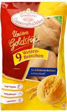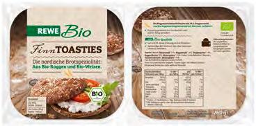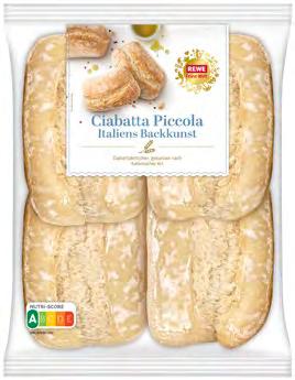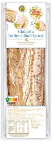 Zum Aufbacken für Zuhause Rosenbrötchen hell oder dunkel² rustikales Weizenbrötchen mit und ohne Ölsaaten, in handwerklicher Optik, je St. Aktion 0.29 Schweizer Weckli² Weizenbrötchen mit vermahlener Randschicht, rustikale Kruste und lockerer saftiger Krume, je St. Aktion 0.32 Dinkel Kumpel² Dinkelbrötchen mit Ölsaaten, je St. Aktion 0.39 REWE Bio Finn-Brötchen⁵ je 260-g-Pckg. (1 kg = 3.81) Aktion 0.99 REWE Feine Welt Italiens Backkunst⁵ je 300-g-Pckg. (1 kg = 5.30) Aktion 1.59 Das knackigrustikale Krustenbrot² Roggenmischbrot, je 1000-g-St. Aktion 1.29 Anno »1688«² traditionelles rustikales Weizenmischbrot, je 800-g-St. (1 kg = 2.36) Aktion 1.89 Roggen Pur oder Vital & Fit² Roggenbrot oder Malz-Mehrkornbrot mit Sonnenblumenkernen und Leinsamen, je 400-g-St. (1 kg = 2.50) KNALLER AKTION 1.00 Alle Brote sind auch geschnitten erhältlich. A B C D E A A B C D E A Nur in teilnehmenden Märkten. Bargeldlos zahlen mit Giro- und Kreditkarte. ⁵ Der abgebildete Nutri-Score gilt nur für die gezeigten Sorten. Bei anderen Sorten kann der Nutri-Score abweichen. Weitere Informationen unter rewe.de/nutri-score. ² Nur in Märkten mit Backstation. Dieses Druckerzeugnis wurde mit dem Blauen Engel zertifiziert. REWE Markt GmbH, Domstr. 20 in 50668 Köln, Namen und Anschrift der Partnermärkte findest du unter www.rewe.de oder der Telefonnummer 0221 – 177 397 77.