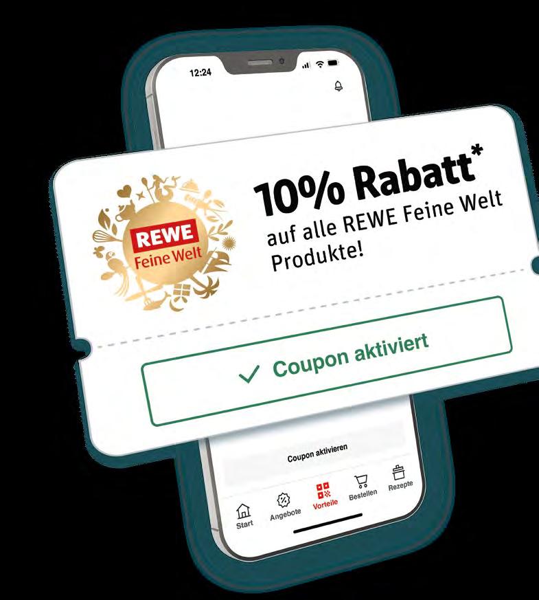 Deine REWE App. Deine Coupons. Deine Vorteile. So einfach geht’s: 1. REWE App herunterladen 2. Coupon aktivieren 3. Im Markt scannen und sparen Unsere App Coupons der Woche: Mehr erfahren unter rewe.de/app-coupons App Deal 1.29 € App Deal 0.89 € App Deal 1.79 € REWE Beste Wahl Himbeeren tiefgefroren, je 500-g-Btl. (1 kg = 6.38) REWE Beste Wahl Hafergurt Natur je 400-g-Becher (1 kg = 3.23) REWE Beste Wahl Kräuterbaguette vegan, je 175-g-Btl. (1 kg = 5.09) REWE Beste Wahl Thunfisch Filets versch. Sorten, 112-g-Abtropfgew., je 2 x 60-g-Dose (1 kg = 15.98) App Deal 3.19 € Nur in der REWE App *ab dem Kauf von 2 Produkten, gültig vom 29.05. – 18.06.2023