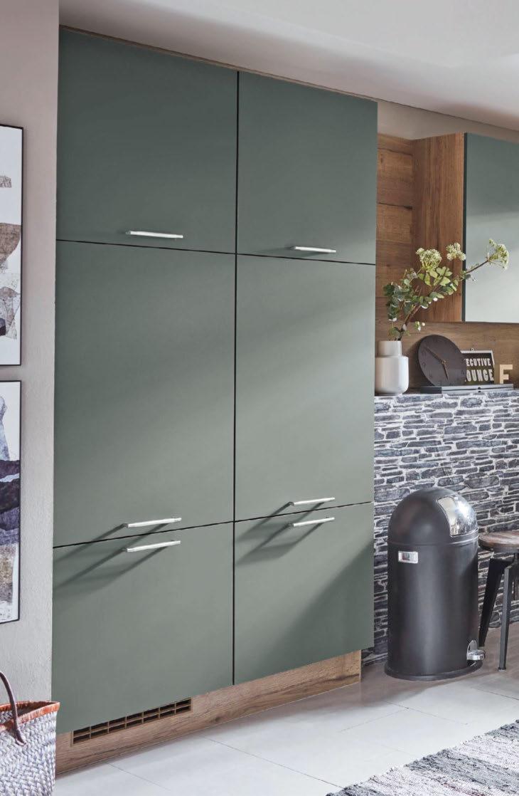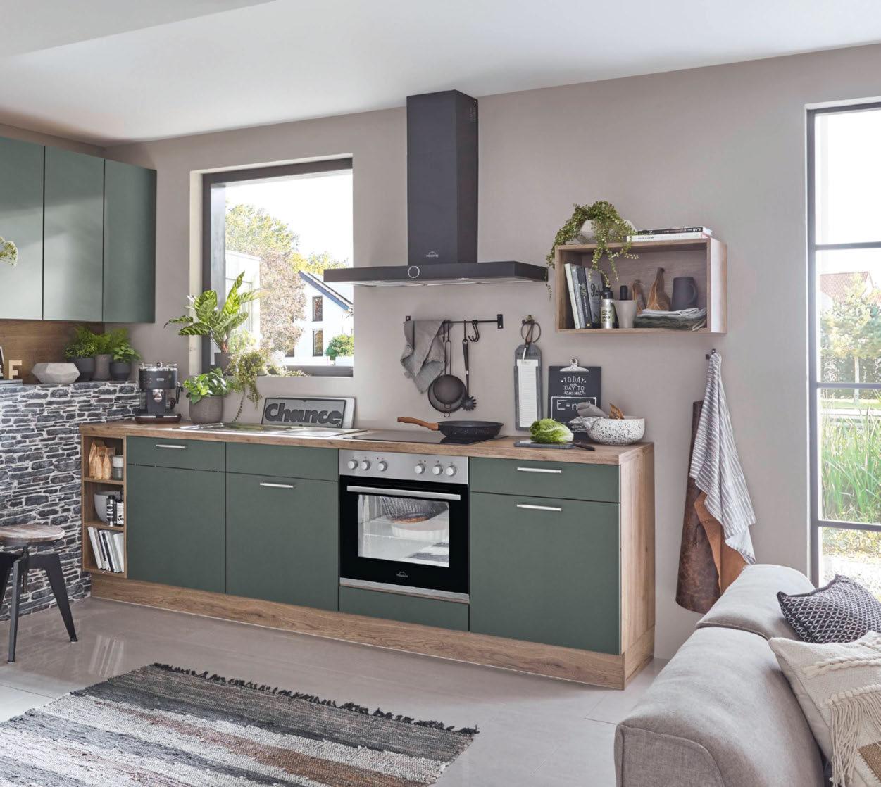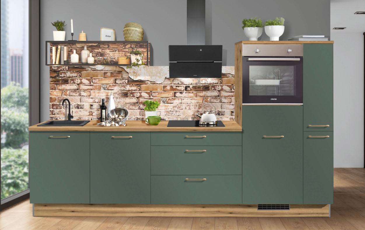 Einbauküche** mit Fronten in Verde, Korpus in Evoke Eiche Nachbildung, Granitspüle, ca. 305 cm, 1279001655, 1242009800, -006500, -008000, 1324002600