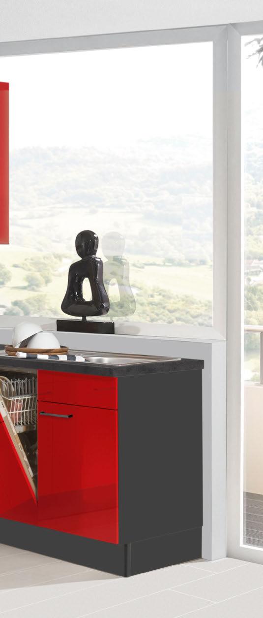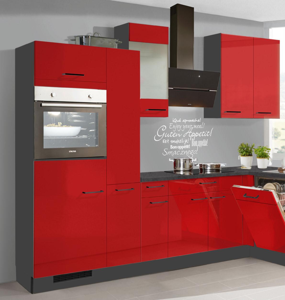 mit Lacklaminatfronten in Rot Hochglanz, Korpus in Graphit, ca. 275 x 175 cm, 1279000255, 1242009800, -006500, -008000, 1324002600