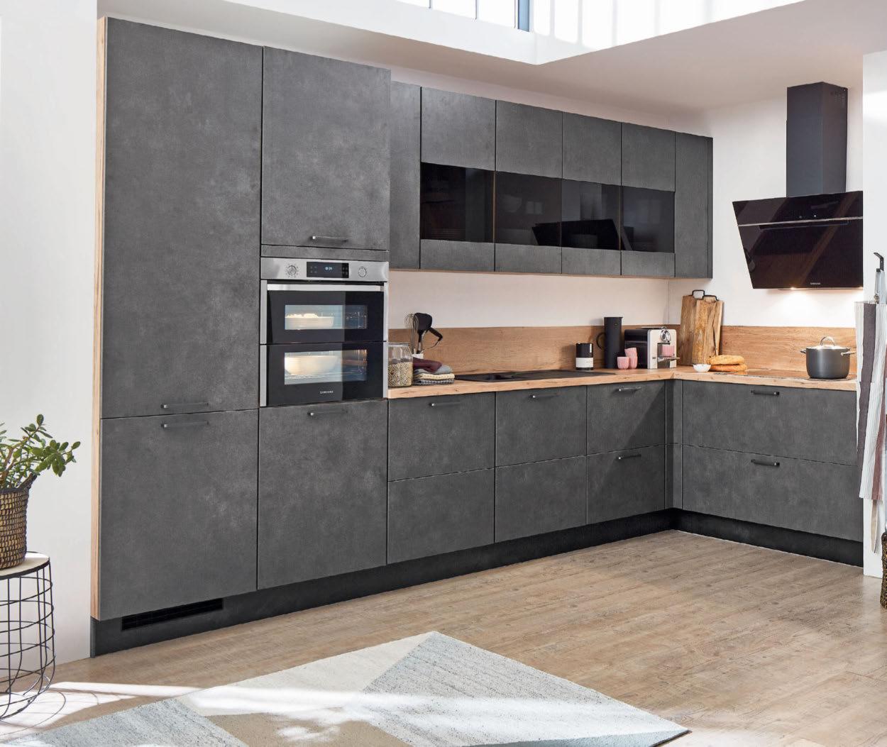 Alle Küchen ohne Armaturen, Nischenrückwände & Deko! Alle Preise sind Abholpreise! Alle Küchen individuell planbar. 1) Energieeffizienklasse Spektrum A+++ bis D 2) Infos auf Seite 6/7 *Wie abgebildet, Geräteabbildung ähnlich, ohne Deko. **Alle Oberflächen sind Kunststoff-Holzdekornachbildung. **** Gefrierfach Einbauküche** mit Fronten in Beton Terragrau Nachbildung, Korpus in Schiefergrau Nachbildung, Edelstahlspüle, ca. 306 + 306 x 110 cm, 0180004455 Frontenvielfalt in Betonoptik. Beton Sand** Beton Schiefergrau** Beton Terragrau** Beton grau** Weißbeton** Schwarzbeton** Per Videoberatung zu deiner Traumküche! Finde hier deinen Beratungs-Termin! Persönliche Planung mit unseren KüchenExperten! 8499.-47 % 16299.Lieferung & Montage 2) Inklusive