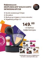 + + Кафеавтомат Krups Intuition Preference EA8738 + 1 кг кафе на зърна Lavazza ORO Quattro Force технология Интуитивно управление със светлинен индикатор Система за мляко • 3.5 инча сензорен екран 11 рецепти Кафеавтомат Krups Essential EA8108 + 1 кг кафе на зърна Lavazza ORO Thermoblock система за перфектно еспресо от първата чаша 15 bar налягане Метална кафемелачка с 3 степени на смилане Дюза за пара 1450 W мощност Еспресо машина Krups Virtuoso XP442 Thermoblock система за перфектно кафе от първата чаша Компактен и модерен дизайн Дюза за пара за пухкаво капучино 15 bar налягане Приготвяне на 2 напитки едновременно L6FNI48S Пералня • Технология