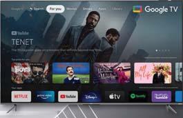 NEO LED-39HB50 HD/*39SH22 HD/*40SF22 FHD SMART TV 39''/*40" (99/*101 CM) 39" 1366x768 HD/ *40" 1920X1080 FHD *39SH22 HD/*40SF22 SMART TV • DVB-T/C/T2/S2/S, HDMIx2, USB, CI 359.- 39“ 319.- 39“ 389.- 40“ NEO LED-24H2/ *32H2 HD LED TV 23,6"/*31,5" (61/ 81 СМ), 1366X768 HD ТУНЕР - DVB_T/T2/C HDMI, USB, VGA, CI, SCART HISENSE 65A7GQ UHD QLED SMART TV • 65'' (165 CM), 3840X2160 UHD • SMART TV, VIDAA U5.0 • DOLBY ATMOS, HDR 10+ • Netflix, YouTube Prime Video Rakuten TV • DVB-T2/T/C/S2/S, 3XHDMI, 2XUSB HISENSE 43A6BG UHD SMART TV 43'' (108 CM), 3840X2160 UHD SMART TV, VIDAA U5.0 HDR 10+ Netflix, YouTube, Pr me Video, Rakuten TV DVB-T2/T/C/S2/S, 3XHDMI, 2XUSB HISENSE 32A4HA HD ANDROID SMART TV 32" (81 СМ), 1366 X 768 HD SMART TV, ANDROID ТУНЕР: DVB-T2/T/C/S2/S 2XHDMI, 2XUSB, RJ45 NEO 55QLED22 SMART QLED TV 55'' (139 CM), 3840x2160 QLED QUANTUM DOT технология SMART TV ТУНЕР DVB-T/C/T2/S2/S NEO LED-55M30 UHD SMART TV 55'' (139 CM) 3840x2160 UHD SMART TV, DVB-T/C/T2/S2/S HDMI, USB 50/65C635 QLED SMART TV ANDROID 50/65" (127/165см ) Резолюция 3840 X 2160 • PPI 3100 Processor Quad core Dolby Vision, HDR10 HDR10+, PQ10 Dolby AC4 Do by TrueHD Операционна система: Android 50/65/85P735 UHD LED SMART TV ANDROID 50/65/85" (127/165/215см ) Резолюция 3840 X 2160 Dolby Vision, HDR 10 PPI 2700 Dolby Atmos Операционна система: Android 65/75C935 MINI QLED SMART TV ANDROID 65/75" (165/190см ) • Резолюция: 3840X2160 Quad Core Processor PPI: 4900 Dolby Vision IQ, HDR10+, HDR10 Onkyo 2.1.2 sound system Операционна система: Android 6 A 949.- 50“ 779.- 50“ 43/55P635 UHD LED SMART TV ANDROID 43/55" (109/139см ) Резолюция 3840 X 2160 Processor Quad Core GoogleTV 799.- 55“ 599.- 43“ 40S6200 SMART LED TV ANDROID 40" (101см ) Резолюция 1920X1080 PPI: 300 QUAD CORE PROCESSOR 479.- 40“ TCL C935U 5.1.2 SOUNDBAR 5.1.2-канална саундбар система Мощност: 780W RAY DANZ Аудио Do by Atmos & DTS: X • Bluetooth 5.3, USB вход, Wi-F 5 749.- 55“