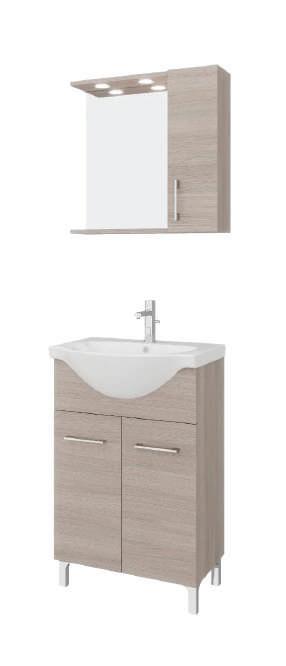 КОМПЛЕКТ МЕБЕЛ ЗА БАНЯ С ОГЛЕДАЛО PVC, ЗА СТЕНЕН МОНТАЖ, БЯЛ ШКАФ С УМИВАЛНИК