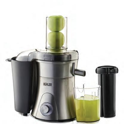 1,5 л контейнер за отпадъци; 0,5 л чаша за сок; цедка от неръждаема стомана; две скорости, 800W