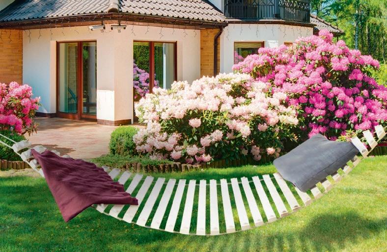 Dann bohrst du die Löcher in die Leisten und führst das Hanfseil durch. Benutze dabei Abstandshalter für die Leisten, damit deine Liegefläche später gleichmäßig ist. Das Seil sollte an beiden Enden exakt die gleiche Länge haben, so kannst du die Seile möglichst weit entfernt von den Leisten verknoten – das ist gut für ein entspannteres Liegen. Jetzt kannst du dir einen schattigen Platz suchen und deinen Garten in deiner neuen Hängematte genießen!