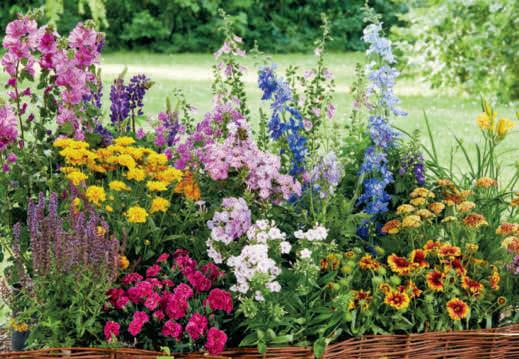 Mediterraner Blühmix versch. Sorten, z. B. Sommerjasmin, Nelke, Kapkörbchen, Eisenkraut, Petunie, Levkoje, 14-cm-Topf, Art.-Nr. 4584215 u. a.