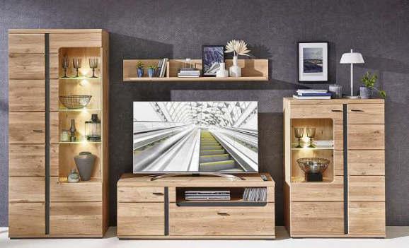 FrontAlteichemassivgebürstet,KorpusOldArtisanOakNachbildung, AbsetzungSchwarzMatt,Maße:ca.360x203x42cm(BxHxT)