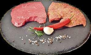 Rinder-Braten und -Gulasch aus der Keule, geschnitten (ausschließlich Färse oder J b ll ) von Alpenrind Salzburg 100 g Topside-Round-Steak aus der Rinder-Oberschale geschnitten, fein mariniert von Alpenrind Salzburg