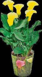 ◀ Calla Zantedeschiaaethiopica, im10,5-cm-Topf, fürInnenoderAußengeeignet, inverschiedenenFarben