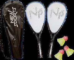 Material:Aluminium,bestehendaus2Schlägern, Maße:ca.58,5x22,5x4cm(LxBxS),3Federbällen und1praktischenTragetasche