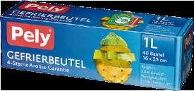 Gefrierbeutel ▶ reißfest, flüssigkeitsdicht, frostsicher bis -40 °C, ca 1 Liter: 40 Beutel, ca 2 Liter: 30 Beutel, ca 4 Liter: 20 Beutel, ca 6 Liter: 15 Beutel, ca 10 Liter: 10 Beutel