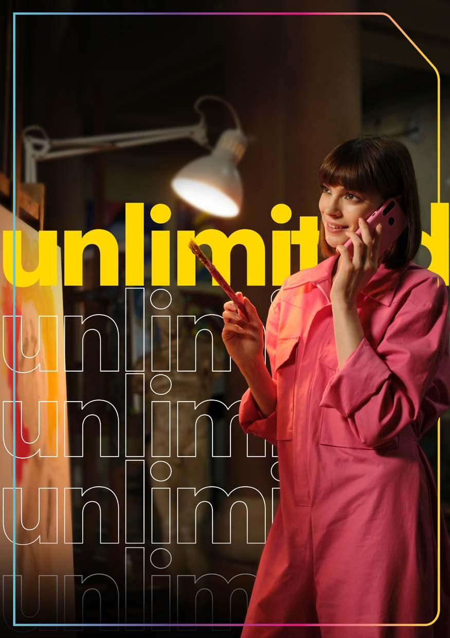 Тарифната линия Unlimited при сключване на 24 мес. договор предлага неогр. МВ в България, неогр. минути и SMS-и в България и в роуминг в ЕС при разумно и добросъвестно потребление, докато услугата е активна. 5G достъп се предостaвя в мрежата на Vivacom, при наличие на съвместимо у-во и покритие. Промоционалните