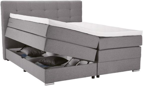 Boxspringbett inkl. Bettkasten, Stoffbezug grau, Unterbau Bonellfederkern, Matratzen Taschenfederkern Härtegrad III, inkl. PU-Schaumtopper, Polsterkopfteil inkl. Ziernähten, Füße Kunststoff silberfarbig,