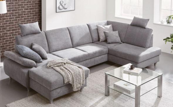 Wohnlandschaft, strapazierfähiger Bezugsstoff, Komfortsitzhöhe 48 cm, Metallfuß schwarz, Sitz Federkern, ca. 180 x 344 x 208 cm 04360070_07 5.629,- UVP 1.799,-