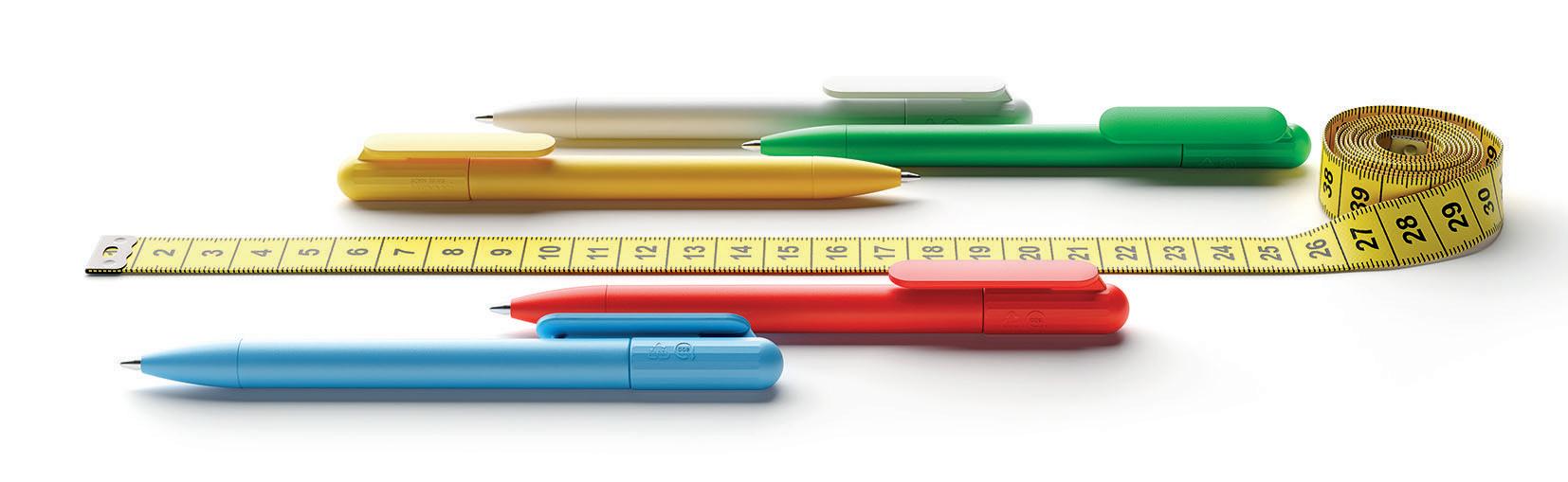 den äntligen tar slut är den lätt att byta ut. Det är en kortare penna med längre livslängd, tillgänglig i åtta standardfärger och valfri PMS specialfärg, alltid i ett matt hölje och har CO2-reduktionssymbolen graverad i relief tillsammans med återvinningslogotypen.