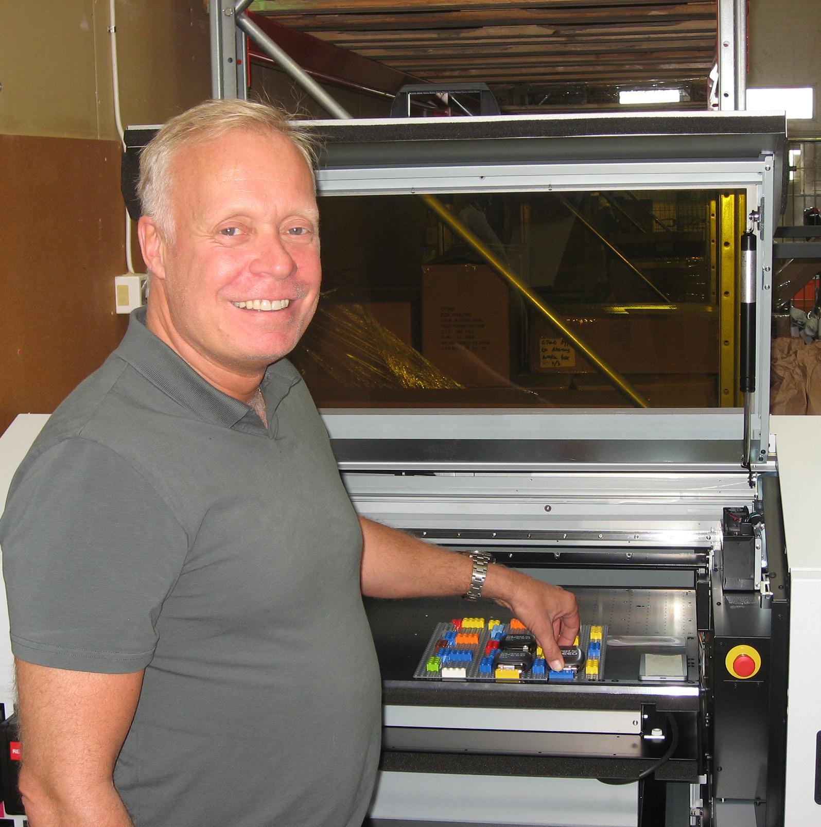 Anledningen till vårt besök är att de nu har påbörjat flytten av sin tryckverksamhet från Kina till Malmö. Allt för att få ner leveranstiden från flera veckor till några dagar. Dessutom ta upp kampen från de stora drakarna som oftast har tryckanläggningar i Polen eller övriga Östeuropa med kort leveranstid. Till sin hjälp har de köpt en Roland VersaObject UVPrinter från Color Systems i Stockholm. Kunden kan i princip nu beställa från en styck och uppåt med tryck. De uppskattar att uppemot 50 000 tryck om året skall kunna ske med den nya maskinen. Sedan tidigare har de egen tryckproduktion av mus- och gamingmattor och dylikt i Malmö. Att flytta tryck hit medför att de nu måste hålla lager på många produkter i huset vilket kräver sin tid, kapital, organisation och utrymme.