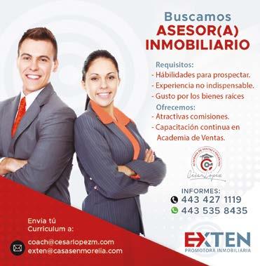 Col. Lomas del Valle, Morelia, Mich. ¿TE INTERESA? 308 67 84 ext 107 - 44 31 42 29 95 sergio.mosqueda@cck.com.mx sandra.mena@cck.com.mx Atractivo 55 48 40 87 31 Tel. 443 308 67 84 Ext. 107 familiares Un