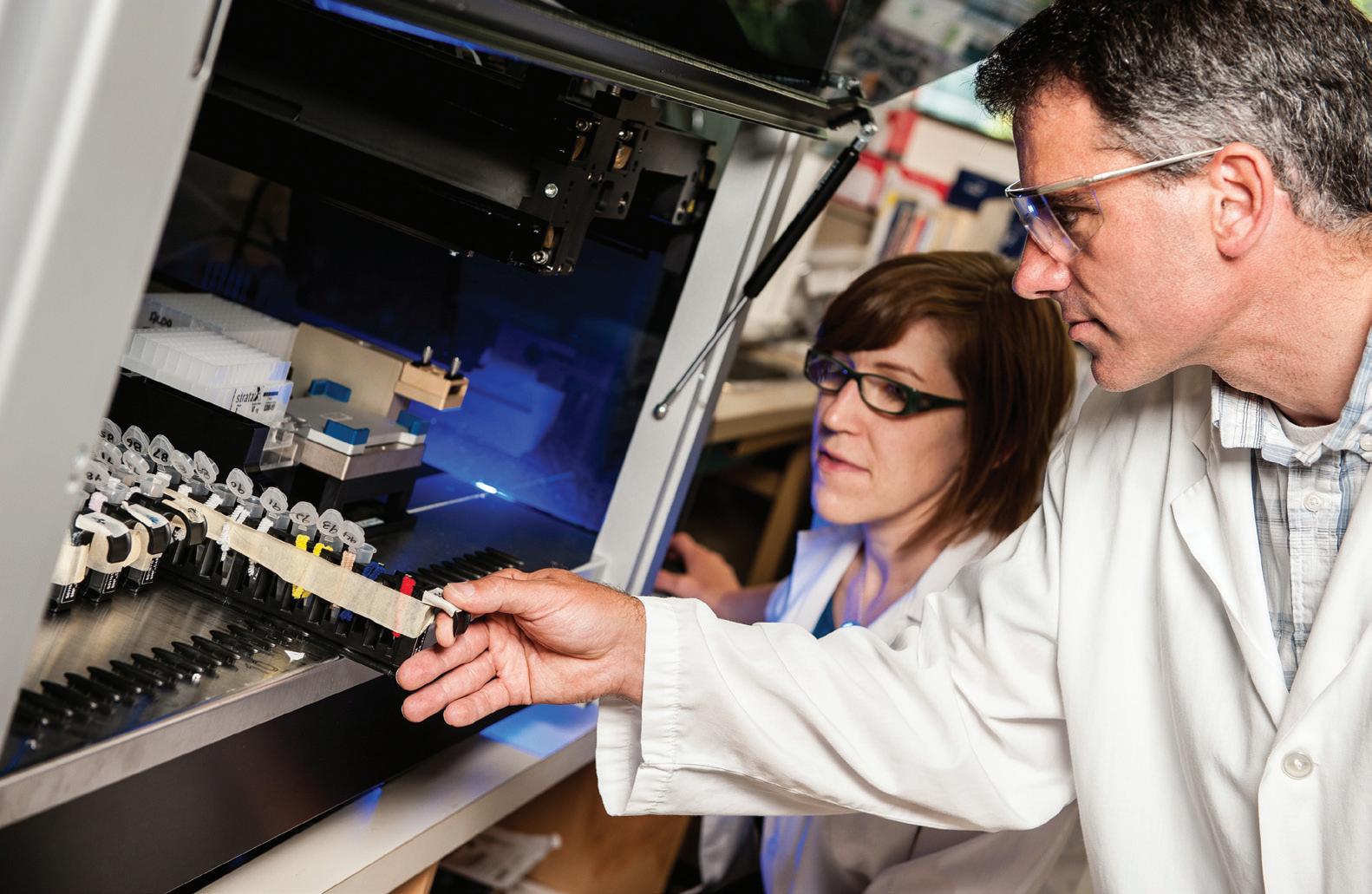 care at the right time, in the right dose, at the right frequency – in a very pharmacotherapyconstrained context. However, there is much speculation on the promise of the molecular genetic approach alone to render widespread, person-specific prevention and care. The essential inclusion of high quality data and information regarding environmental influences (physical, ethnic, social, economic, educational, therapeutic, etc.) and behaviours (diet, physical activity, stress reduction, substance abuse, medication compliance, etc.) is often taken for granted or ignored in the rush to think about genes. Humans are not locked in cages, do not have standardized light-dark cycles, did not come from the same genetic stock, and have widely variant journeys that modify their gene expression, their regulatory systems and their responses to stimulation or injury. With these caveats, and while truly personalized medicine is currently less rather than more common, even in the most advanced societies, we are seeing great strides, especially in areas such as Dr. Dan Holmes and Grace van der Gugten of the St. Paul’s Hospital Clinical Laboratory work hand-inhand with the PROOF Centre team to validate new blood tests for clinical care.