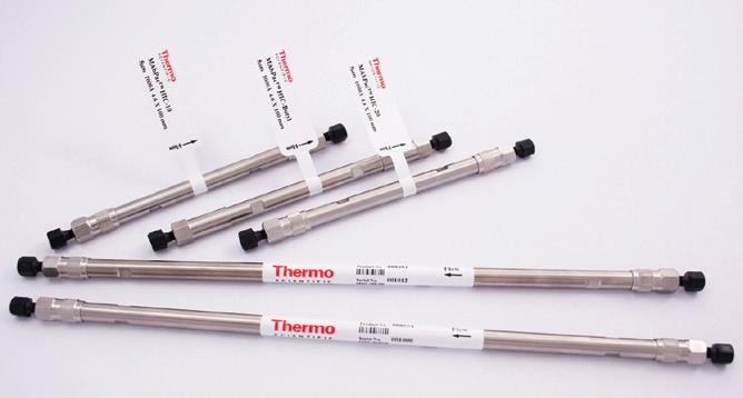 interaction chromatography (HIC) selectivity options, thanks to the expanded family of Thermo Scientific MAbPac HIC HPLC columns. The new MAbPac HIC-20 and MAbPac HIC-Butyl columns offer additional selectivity options for characterizing mAb oxidation variants, intact mAbs, mAb aggregates or fragments and antibody drug conjugates (ADCs). The new columns are also designed for compatibility with organic solvent and aqueous mobile phase, as well as for rugged stability and very low carry-over. Web: www.thermoscientific.com