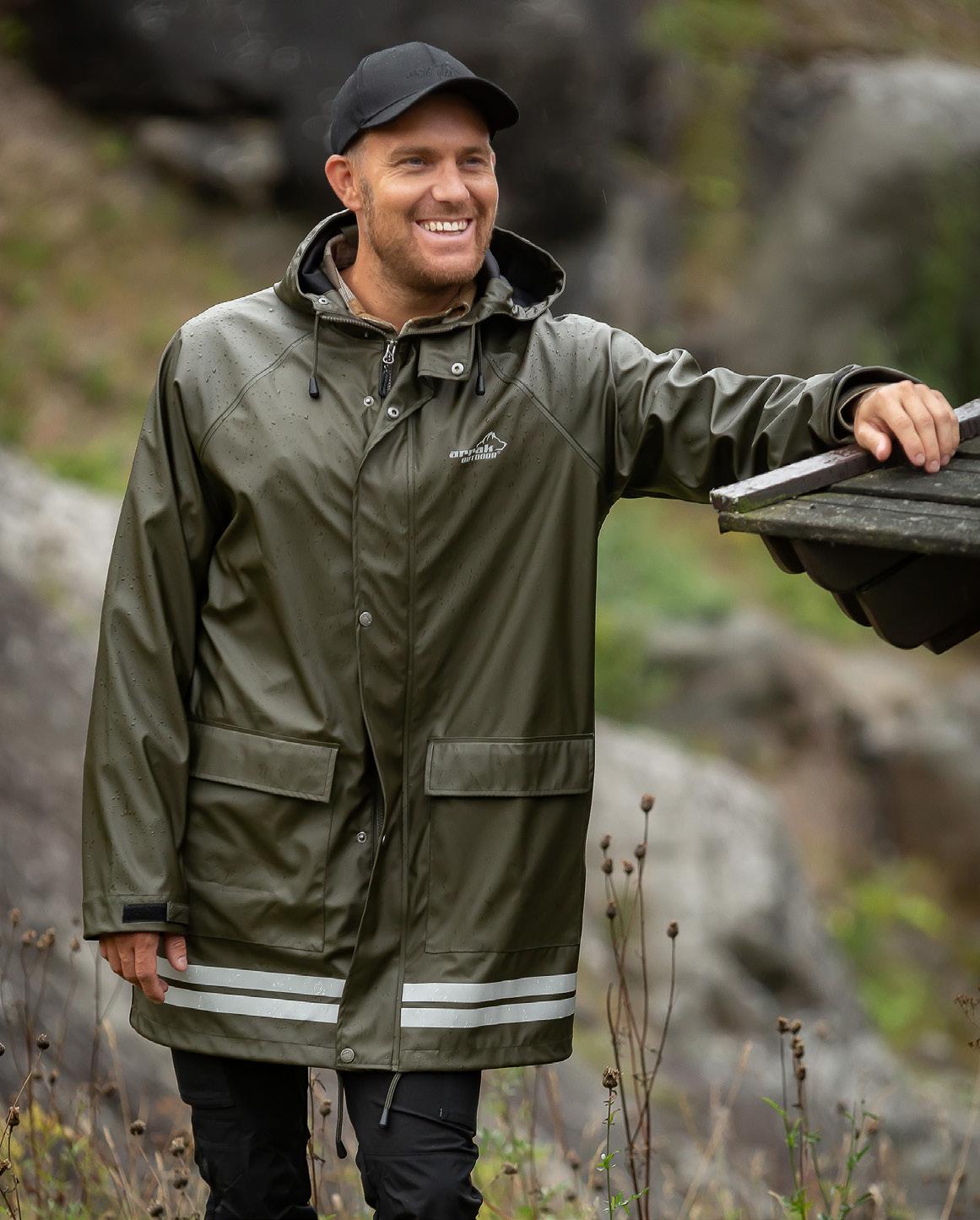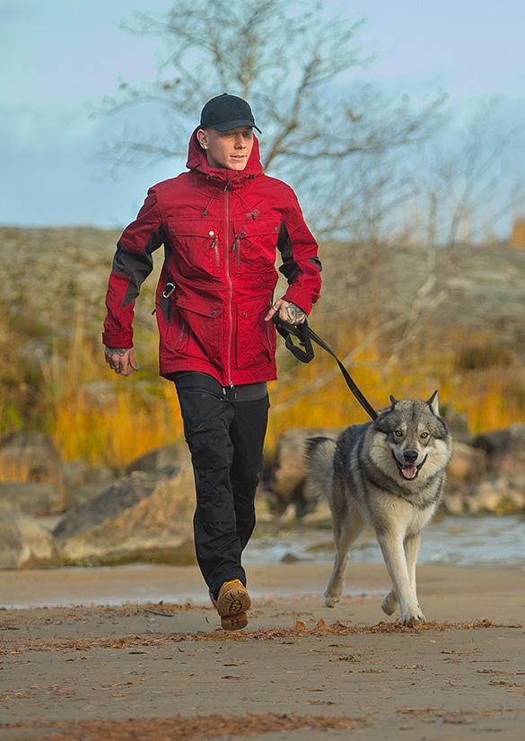 The jacket is made of Oxford nylon, which is a durable material that can withstand external damage such as branches and sharp dog claws. The jacket has a water column of 10,000mm and is fully taped. As many as 14 different pockets on the jacket for everything you need to take with you.