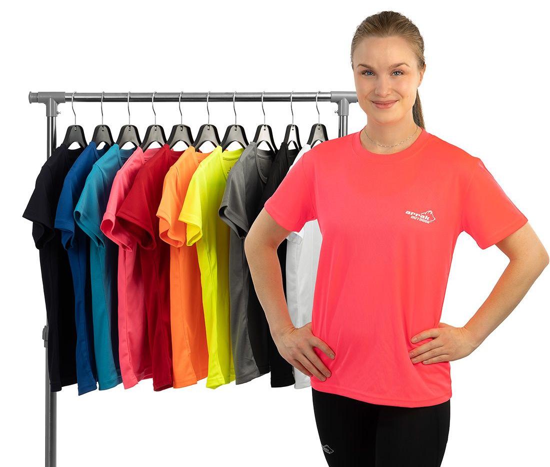 The shirt is made of 100% polyester which is a material that transports moisture from the body while the material dries quickly. You can move freely as the shirt follows your movements regardless of what activity you are doing.