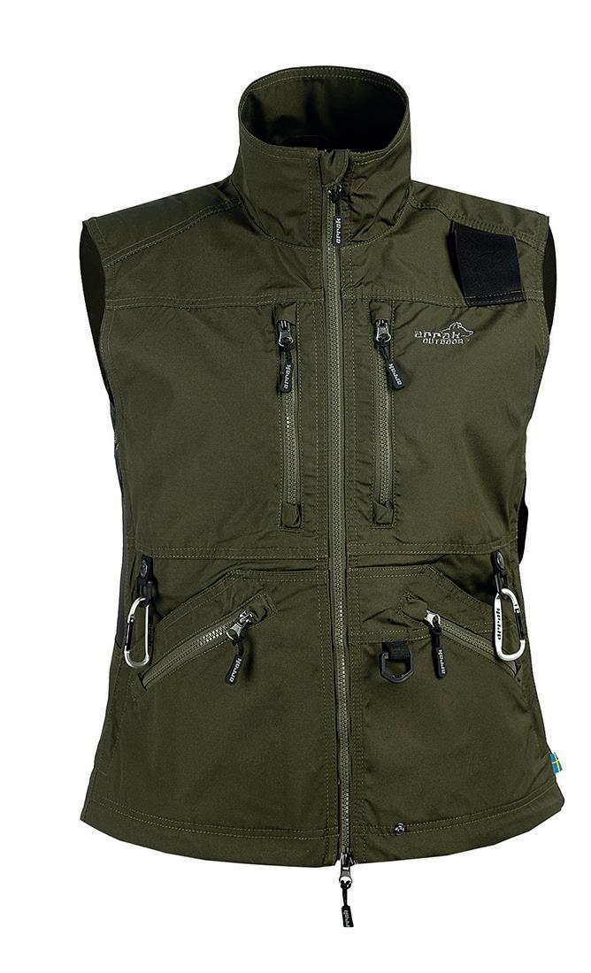 Arrak's Acadia Softshell vest is a functional and elegant vest in flexible softshell material. The jacket is 3-layers and has 3000mm laminate with water and wind resistant capabilities. A classic dog handler vest for you who need that little extra. The vest has six front pockets, four of which have a zipper and a large back pocket without a zipper. Women´s size is slightly turned at the waist