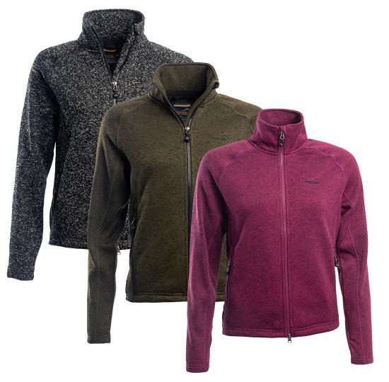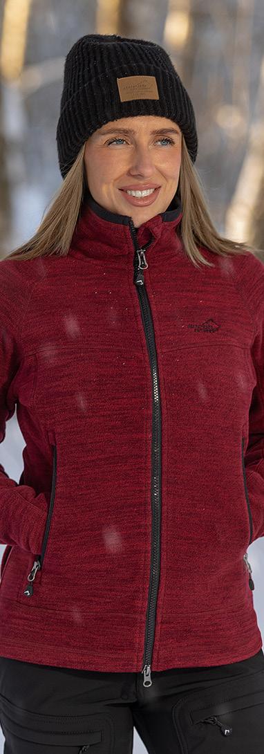 The sleeve cuffs feature a knitted inner cuff with thumb holes for added warmth and comfort. The women’s model has a more tailored fit.