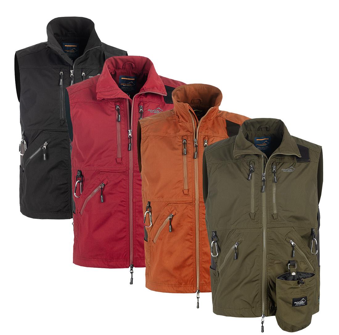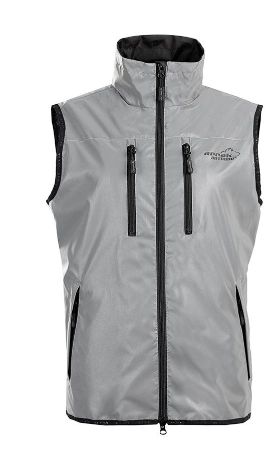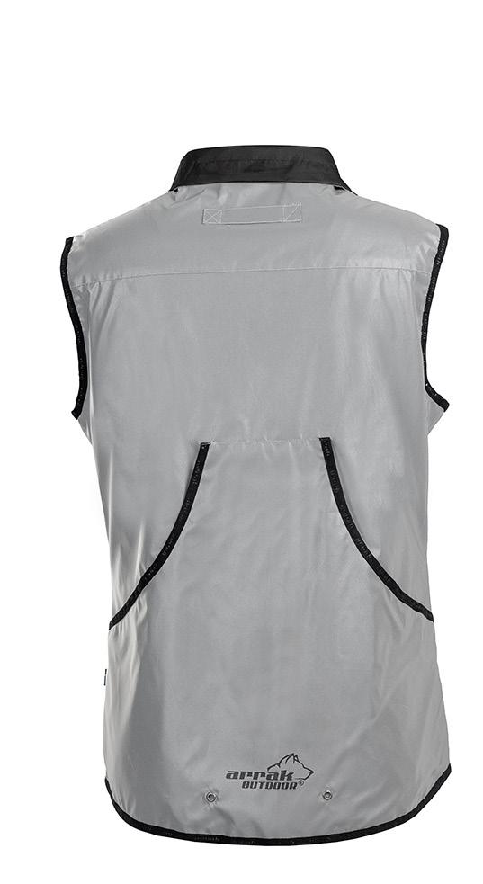 A soft and comfortable lightweight vest in flexible material. Front pockets and chest pockets with zipper. 2 open inner pockets. Also a practical back pocket