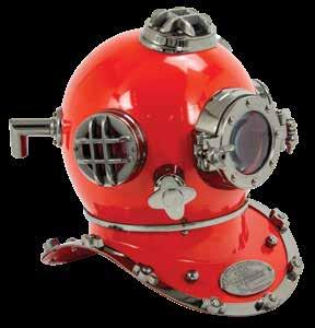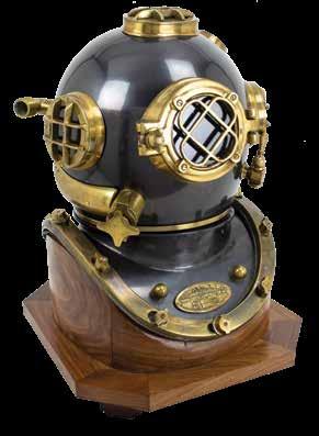 Page 152 MH-061 DIVER’S HELMET - Yellow 17”H 18”L x 14”W $164.50 ea. NET Less Rebate $139.50 ea. NET MH-057 DIVER’S HELMET 17”H 18”L x 14”W $164.50 ea. NET NET $164.50 ea. NET Less Rebate $139.50 ea. NET MH-063 DIVER’S HELMET - Black 17”H 18”L x 14”W $164.50 ea. NET Less Rebate $139.50 ea. NET MH-062 DIVER’S HELMET - Blue 17”H 18”L x 14”W $164.50 ea. Less Rebate $139.50 ea. DIVER’S HELMETS FULL SIZE Outstanding Reproduction of World War II era Diver’s Helmet Really well done with Finshed AL., Nickel & Antique Brass. We got a good deal so we are offering a $25.00 Instant Rebate for each helmet bought $164.50 ea. NET Less Rebate $139.50 ea. NET $25 will be deducted off your invoice for each of these bought A Unique Item For Your Customer 17”H 18”L x 14”W $164.50 ea. NET Less Rebate $139.50 ea. NET DIVER’S HELMET - Gray 17”H 18”L x 14”W NET Less Rebate $139.50 ea. NET © Moby Dick Specialties® 2023