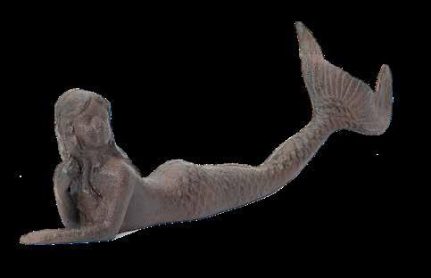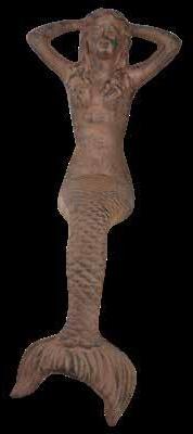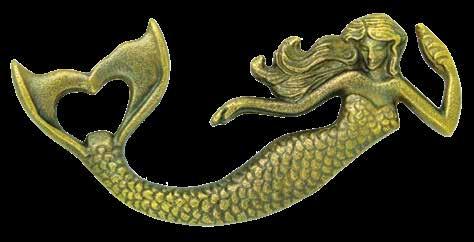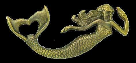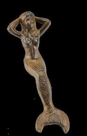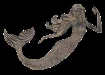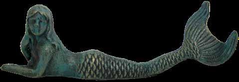 MERMAID W/ STAR- Full Bodied 9”H x 39”L x 2.5”W (3 cl.) $112.00 ea. 2 @ $97.50 ea. Pol. Aluminum Selling Very Well! Bright and Eye Catching