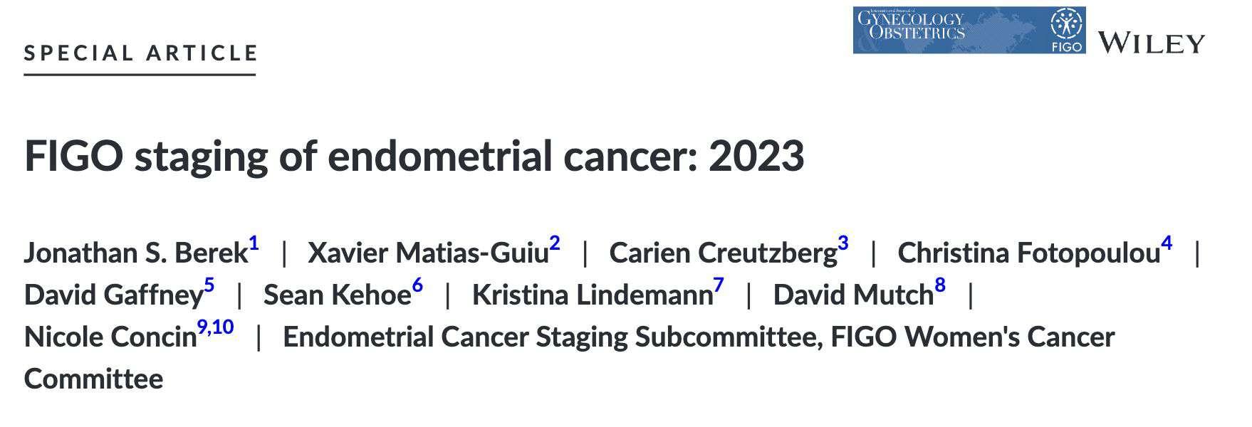 Berek JS, Matias-Guiu X, Creutzberg C, et al. FIGO staging of endometrial cancer: 2023. Int J Gynaecol Obstet 2023;162(2):383-394.
