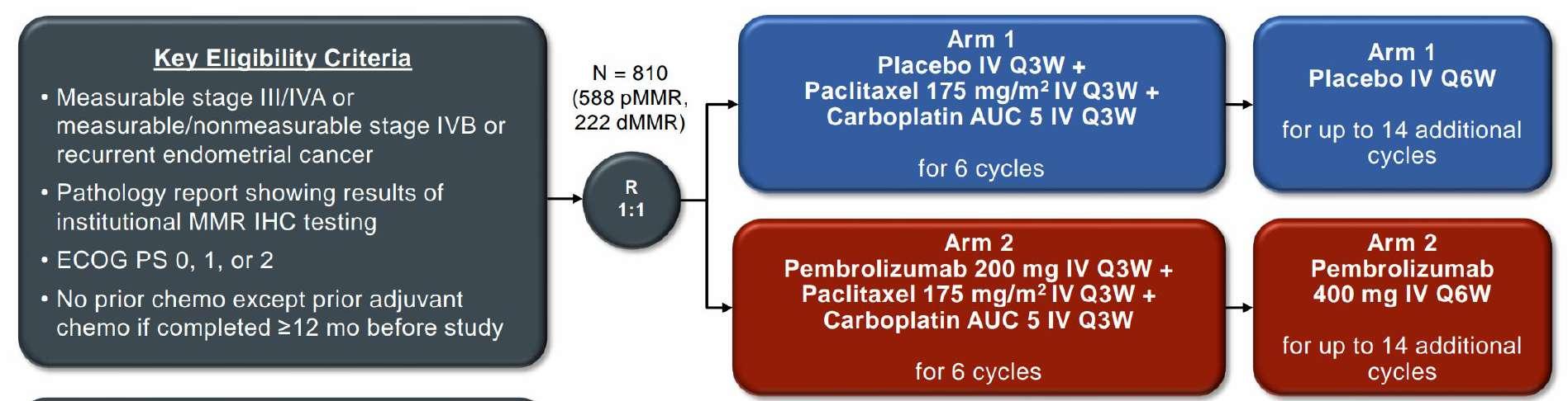 Eskander RN, Sill MW, Beffa L, et al. Pembrolizumab plus chemotherapy in advanced endometrial cancer. NEJM 2023;388:2159-2170.