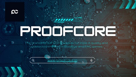 The brand PROOFCORE stands for triple A quality and undetected cheats for BattlEye and EAC games. Started as a small Discord community in 2017, PROOFCORE soon became one of the most well-known and reputable providers in the scene with hundreds of satisfied customers. 100% transparency, unbeatable customer support and a friendly and helpful community and just three more arguments to join PROOFCORE. So don't hesitate, sign up on proofcore.io!